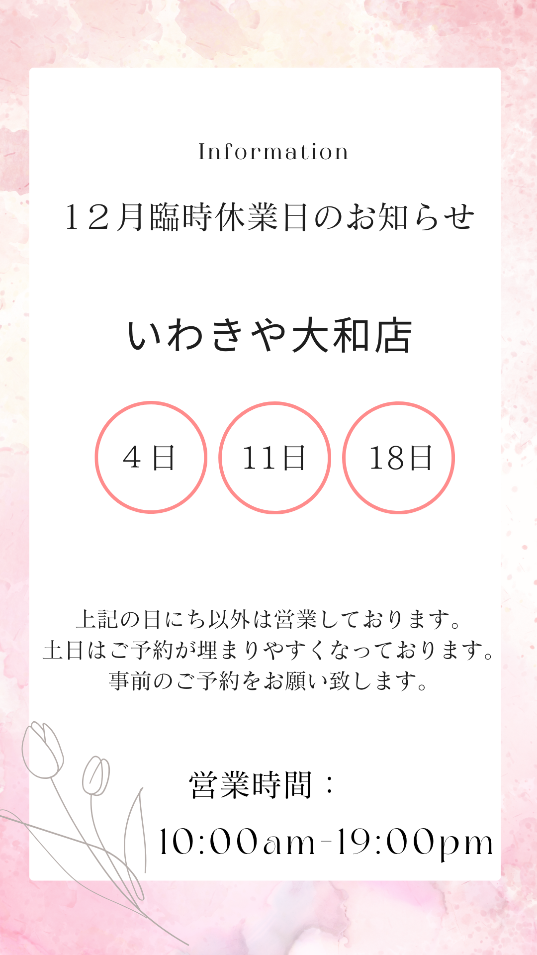 12/4(木)大和店は定休日とさせていただきます。